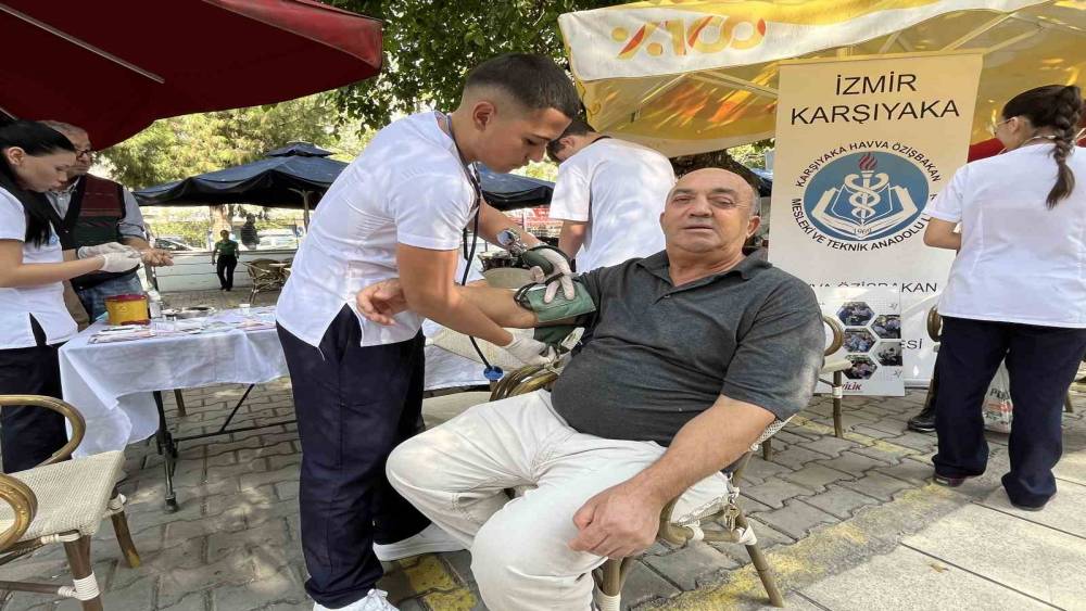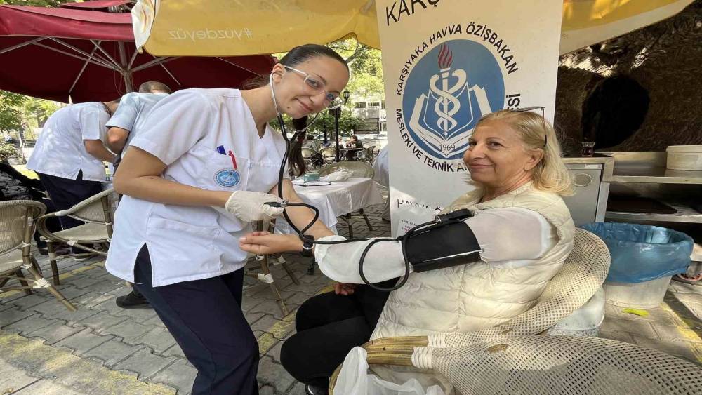 İzmir’de sağlık hizmetleri alanında eğitim gören lise öğrencileri, Karşıyaka’daki park ve kafelerde orta yaşlı ve yaşlı bireylerin tansiyon ve kan şekerini ölçtü. Proje kapsamında katılımcılara sağlıklı yaşam ve kişisel bakım konularında eğitimler de verildi.