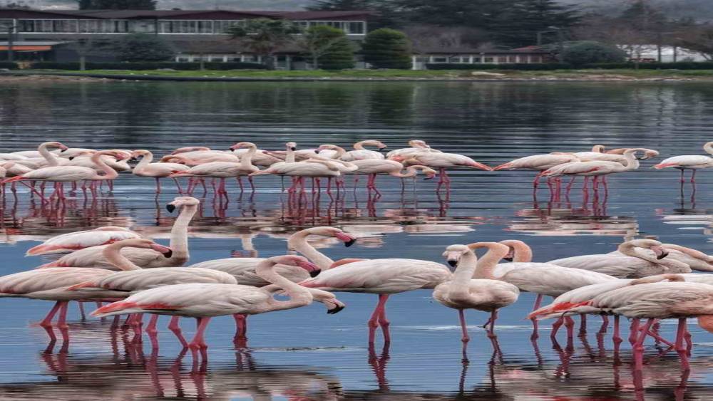Özellikle gün doğumu ve batımında su yüzeyinde oluşturdukları manzarayla dikkati çeken flamingolar, doğa fotoğrafçıları ve kuş gözlemcilerinden ilgi görüyor. Kocaeli’nin kent manzarasıyla bütünleşen kuşlar, dron ile de görüntülendi.