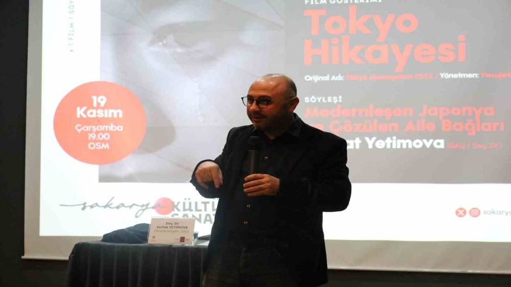 Sakarya Büyükşehir Belediyesi kültür sanat etkinliklerinde Tokyo Hikayesi filmi gösterildi, ardından modernleşen Japonya ve aile yapısındaki dönüşümler üzerine Doç. Dr. Serhat Yetimova ile söyleşi gerçekleştirildi. Ozu’nun klasikleşmiş yapımının ele alındığı programda film estetiği, dönem okumaları ve günümüz dünyasına uzanan mesajlar konuşuldu.