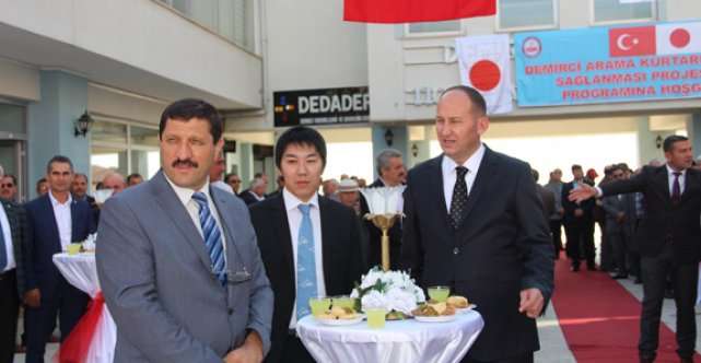 Törende konuşan Japonya Büyükelçilği İkinci katibi Atsushi Muramoto, katılanları Türkçe selamlayarak, "Yerel projeleri hibe desteği çeşitli organizasyonların iş birliği ile bölgenin ihtiyaçları için Japonya resmi kalkınma yardımı kapsamında gerçekleştirilmektedir. Türkiye'de 2000 yılından itibaren yaklaşık 2 milyon 800 bin dolar hibe yardımı yapılmıştır. Demirci Belediyesine afet esnasında hızlı bir şekilde insan hayatını kurtarma, afeti minimumda karşılama noktasında böyle bir proje önerildi. İnsan hayatı ve arama kurtarma da gerekli olan malzemelerin tedarik edilmesi için yardım yapılmıştır. Japonya Türkiye gibi deprem ülkesi olup, AFAD ile afet önleme yolun iş birliği halindedir" dedi.