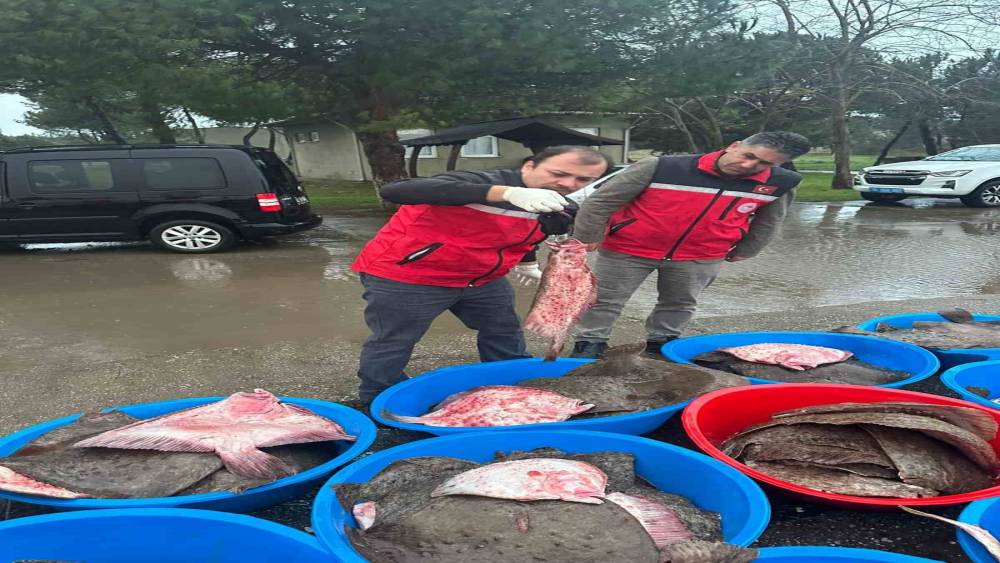 Kocaeli’nin Kandıra ilçesinde gerçekleştirilen denetimlerde, yasa dışı yollarla avlandığı tespit edilen yaklaşık 500 kalkan balığı ele geçirildi.