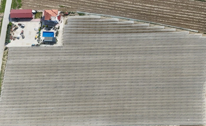 Müşerref Üründü ile Mete Üründü, Kasaplı Mahallesi’nde 50 dönümlük alanda organik üzüm yetiştiriciliği yapıyor. İşletmede yaklaşık 40 dönümlük bölümde kurulan özel tül sistemiyle dolu, don ve aşırı hava olaylarına karşı koruma sağlanıyor.