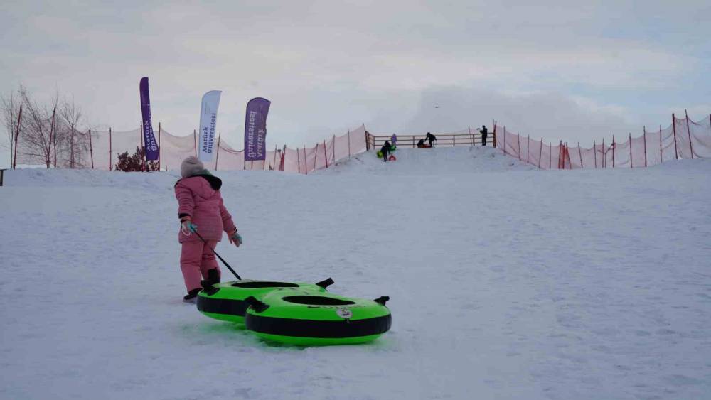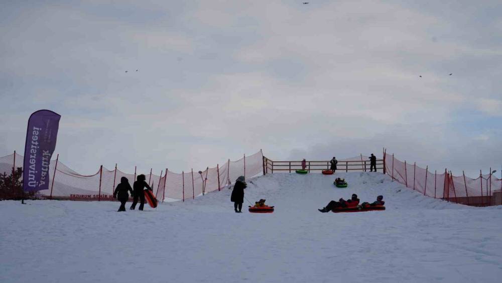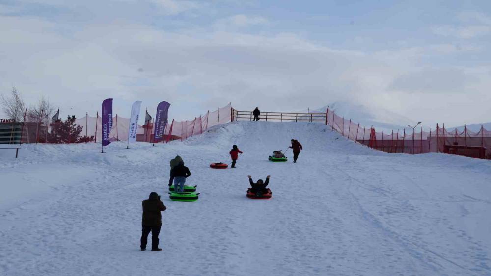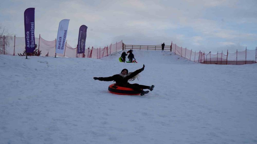 Dünyanın ve Türkiye’nin en önemli kayak pistlerini bünyesinde bulunduran Palandöken Kayak Merkezi yoğun ilgi devam ederken, Atatürk Üniversitesi yönetimi kampüs içinde de kayak ve kızak keyfi yaşamak isteyen öğrenciler için bir pist yaptı.