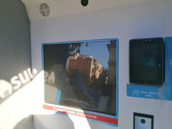 MASKİ Genel Müdürlüğünün Şehzadeler ilçesi Alaybey camii önüne kurduğu yeni ‘MASKİ Matik’ cihazına zarar verildi. Fiili gerçekleştiren vatandaş cihazdaki güvenlik kamerasıyla tespit edildi. Kırılan ekran MASKİ Genel Müdürlüğü Bilgi İşlem Dairesi Başkanlığı ekipleri tarafından ivedilikle onarılarak vatandaşların kullanımına sunuldu.