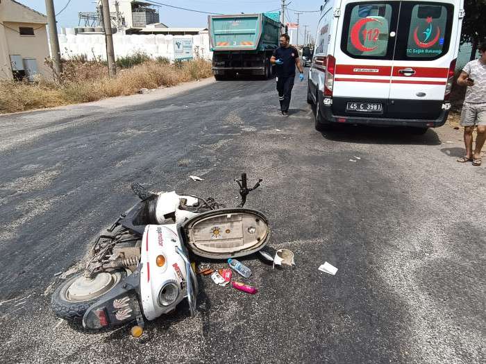 Manisa'nın Turgutlu ilçesinde meydana gelen trafik kazasında kamyon ile çarpışan elektrikli bisiklet sürücüsü yaralandı.