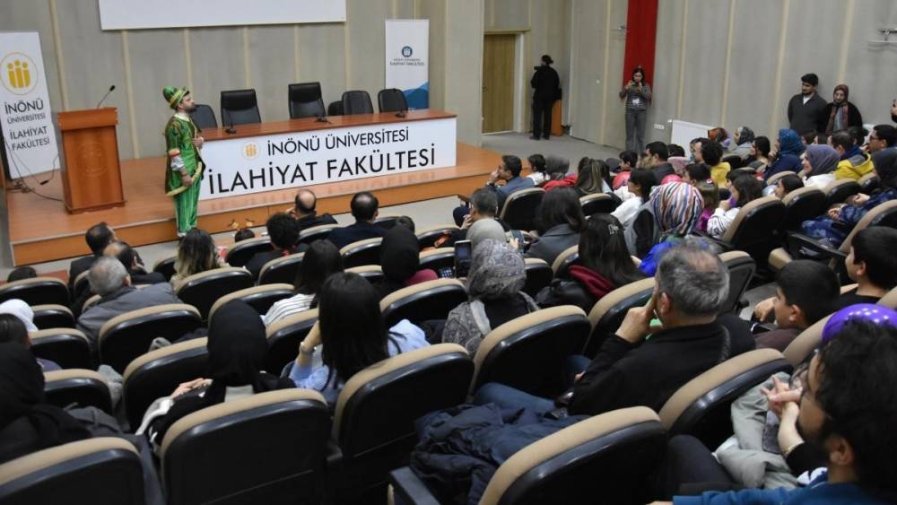 "Kampüste Ramazan Ayı Programı" etkinlikleri kapsamında İnönü Üniversitesi İlahiyat Fakültesi Zahit Aksu Konferans Salonu’nda "Karagöz ile Hacivat" gösterisi izleyicilerle buluştu.Etkinlik başlamadan önce Temel Eğitim Topluluğu çocuklar için yüz boyama etkinliği yaptı. Bütün çocuklara balon ve çikolata hediye edilirken etkinlik renkli anlara sahne oldu.Tiyatro Sanatçısı Mehmet Ali Karataş, Hacivat ve Karagöz gölge oyunundan ipli kukla gösterisine, meddah anlatılarından geleneksel orta oyununa kadar geniş bir yelpazede performans sergiledi. Sadece sahne gösterileriyle sınırlı kalmayan Karataş, çocukları da oyunun içine katarak onlarla çeşitli oyunlar oynadı.Programın sonunda katılımcılara geleneksel Ramazan şerbeti ikram edildi. Herkesin yoğun ilgi gösterdiği etkinlik, kültürel değerlerin yaşatılması adına büyük beğeni topladı.