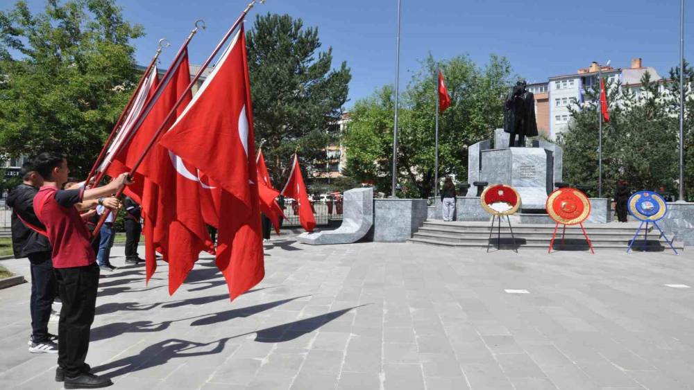 Etkinlik Hükümet Konağı önündeki Atatürk Anıtı’na valilik, garnizon komutanlığı ve belediye başkanlığının çelenlerinin sunumu, saygı duruşu ve İstiklal Marşı’nın okunmasıyla başladı.