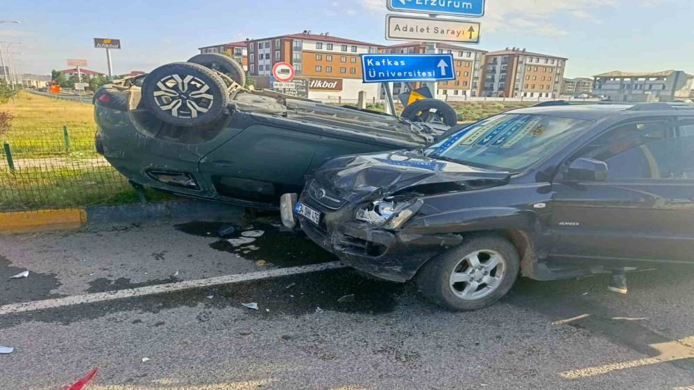 Kaza; Kars-Erzurum karayolu Havaalanı Kavşağında meydana geldi.Kars-Erzurum karayolunda seyir halindeki otomobil ile havaalanından Kars’a seyir halindeki otomobil, kavşakta çarpıştı. Çarpışmanın şiddetiyle bir otomobil sırt üstü devrildi. Kazada 2 kişi yaralandı.