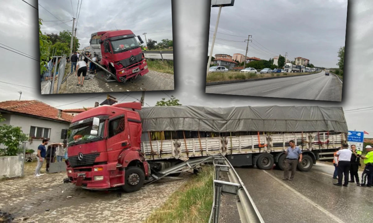 Manisa'nın Kula ilçesinde yağmurda kayganlaşan yolda kontrolden çıkan tır, bariyerlere çarptıktan sonra yan yola devrildi. Yaşanan kaza sonucunda sürücü yara almazken, araçta hasar meydana geldi.