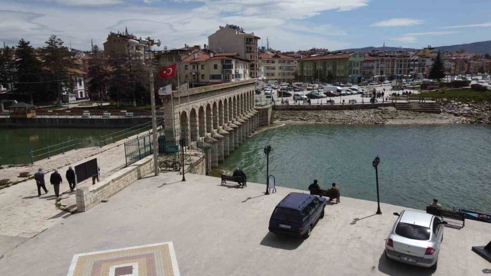 Beyşehir Gölünün kıyı kesimlerindeki parkların yanı sıra ilçeye gelen ziyaretçiler de kuruyan göl alanlarına inip yürürken ortaya dikkat çekici görüntüler çıktı.