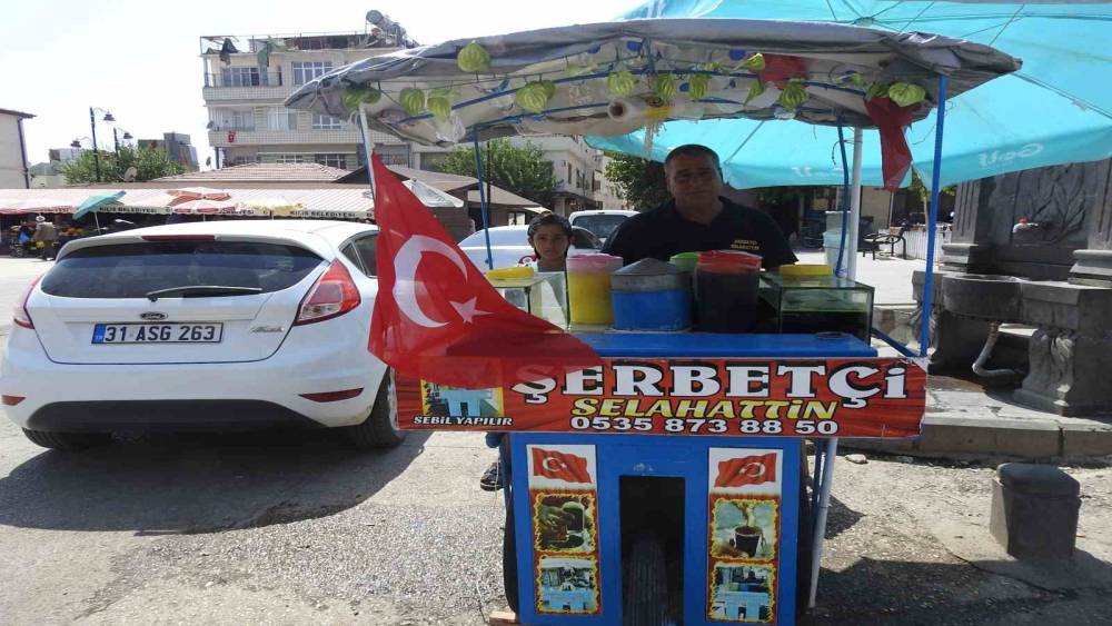 Meyan kökü, limonata ve çeşitli şerbetler sattığını belirten Selahattin İncirli, "Yaz aylarında şerbete yoğun ilgi var. Özellikle meyan kökü şerbeti tercih ediliyor. Böbrekteki taş ve kumu döker, mide şişkinliğini alır. Şifalıdır. Genellikle meyan kökü tercih ediliyor" dedi.