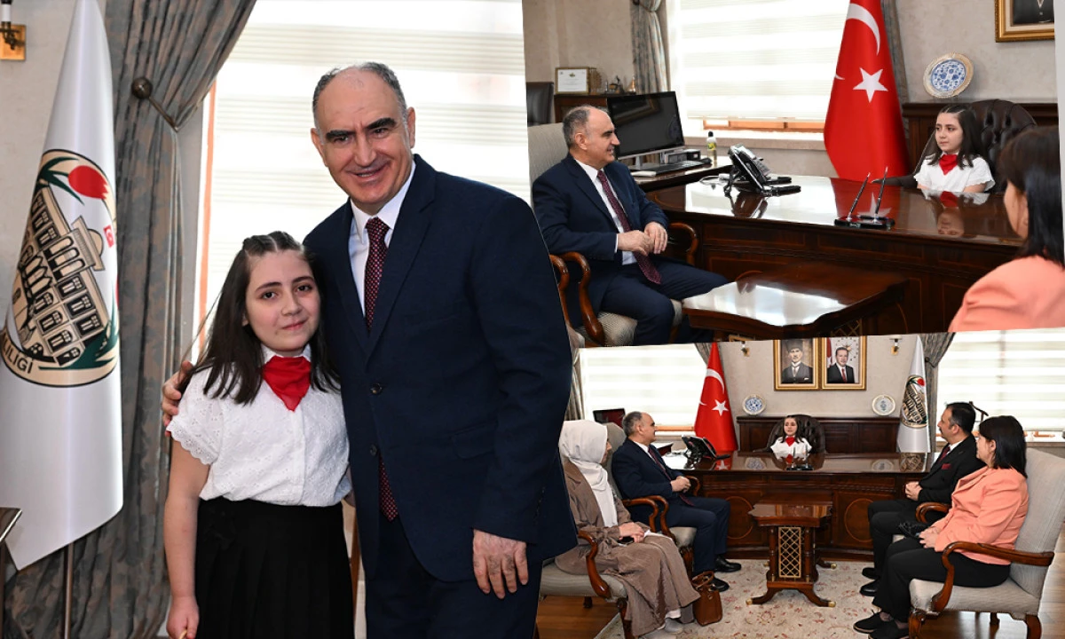 Manisa’da 23 Nisan Ulusal Egemenlik ve Çocuk Bayramı kutlamaları çerçevesinde düzenlenen geleneksel makam devir teslim töreniyle, Manisa Valiliği koltuğuna Ahmet Tütüncüoğlu İlkokulu 3. sınıf öğrencisi Mehlika Örtülü oturdu.