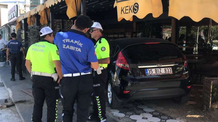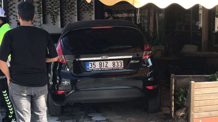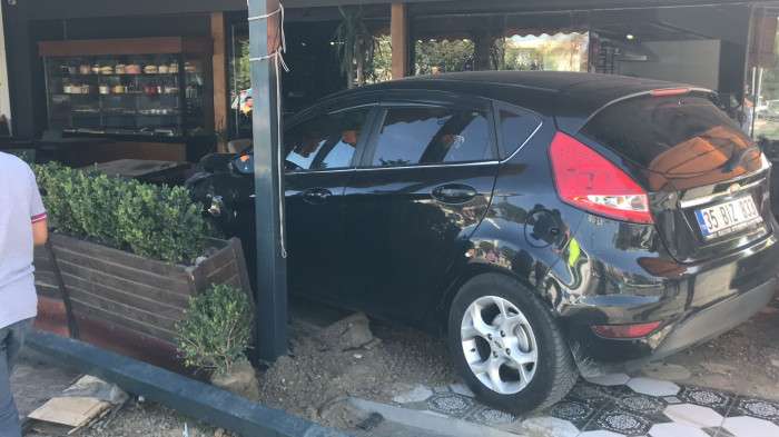 Kaza, 15.30 sıralarınsa 19 Mayıs Bulvarı'nda meydana geldi. Öznur A. idaresindeki 35 BIZ 833 plakalı otomobiliyle kavşağı döndüğü sırada direksiyon hakimiyetini kaybetti. Savrulan araç kavşağın köşesinde bulunan kafeye daldı. Müşteriler panikle kaçmaya başlarken o sırada kafede kira sözleşmesi yapan ev sahibi Mustafa K. ile kiracısı Melike K. aracın çarpmasıyla yaralandı. Haber verilmesi üzerine bölgeye sağlık ekipleri sevk edildi. Olay yerine gelen ekipler tarafından hastaneye kaldırılan 2 yaralının sağlık durumlarının iyi olduğu öğrenilirken araç sürücüsü Öznur A. şoka girdi. Kazayla ilgili soruşturma başlatıldı. Öte yandan kaza kafenin güvenlik kameraları tarafından saniye saniye kaydedildi. Görüntülerde, aracın kafeye girmesi ve müşterilerin panikle kaçışması yer aldı. (İHA)