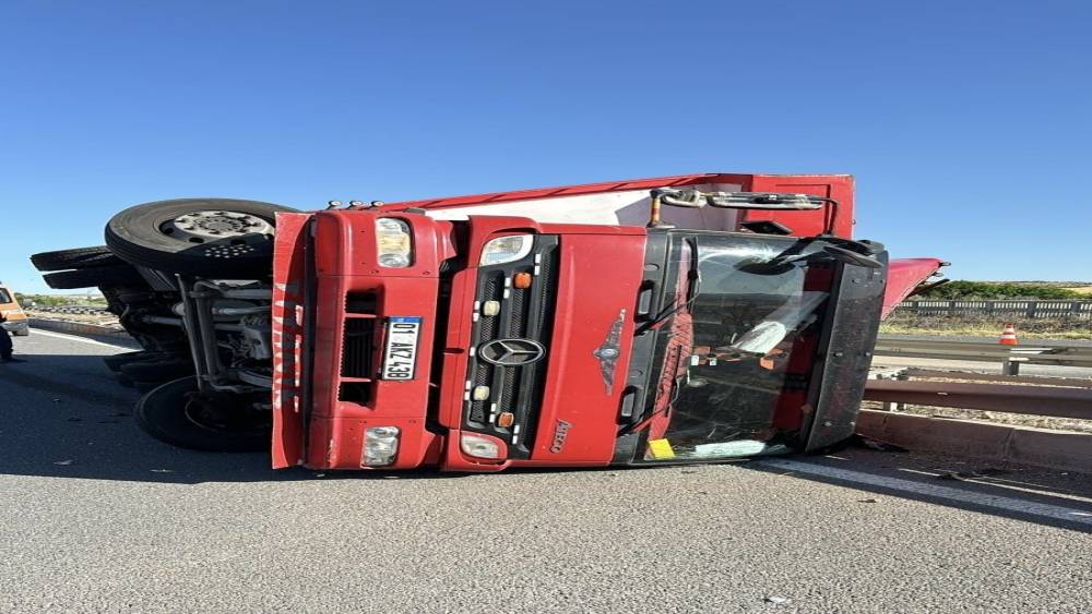 Konya’nın Kulu ilçesi yakınlarında kontrolden çıkan kamyonun devrilmesi sonucu 1 kişi yaralandı.