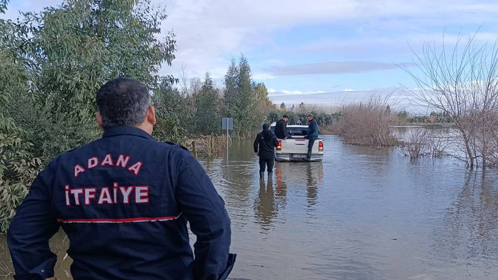 Adana’nın Kozan ilçesinde, sağanak yağış sonrası Bucak Sumbas Çayı’nın taşması sonucu Bulduklu yolunda mahsur kalan otomobiller kurtarıldı.