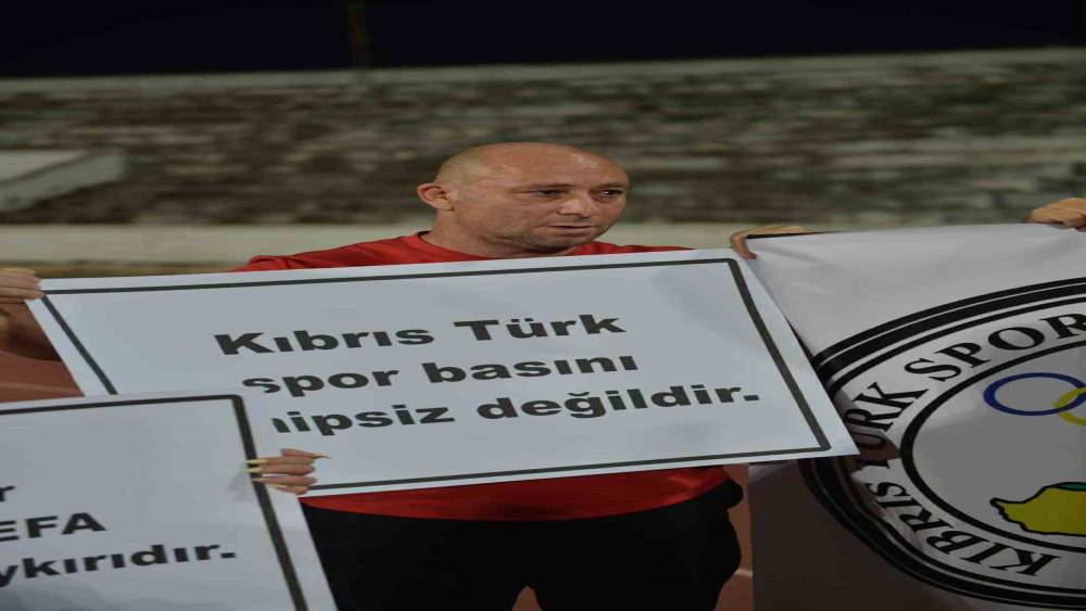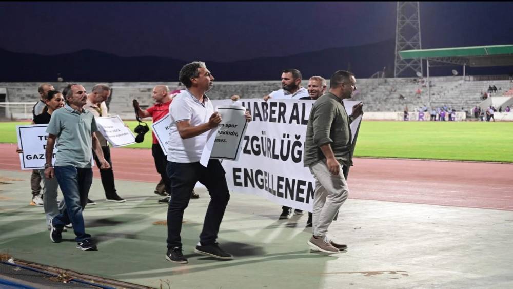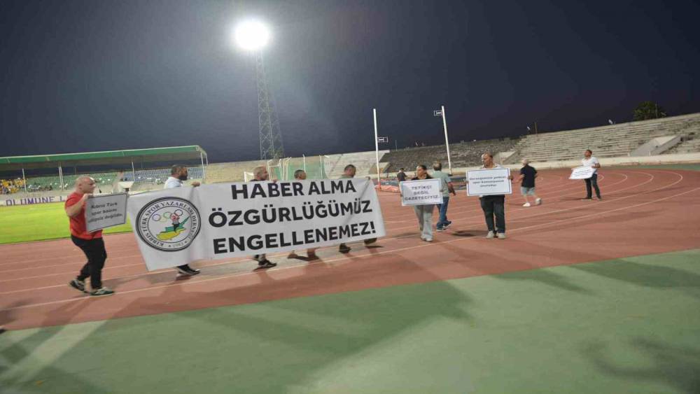 Süper Kupa maçında eylem yapan spor yazarları, ’Haber Alma Özgürlüğümüz Engellenemez’ pankartıyla saha içinde tepki gösterdi. BASIN-SEN’in de destek verdiği eylemde KTSYD Başkanı Necati Özsoy ve yönetim kurulu üyesi Serkan Soyalan açıklamalarda bulundu. Spor yazarı ve foto muhabirlerine karşı uygulanan yasak kararından dönmeyen KTFF Başkanı Hasan Sertoğlu’na tepki gösterildi.