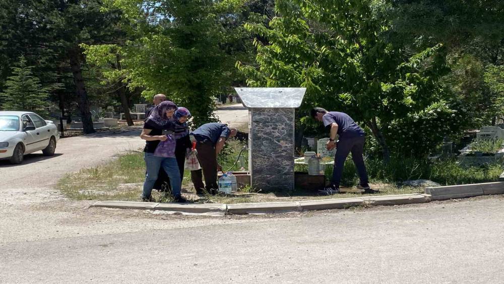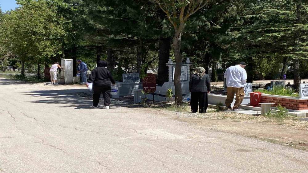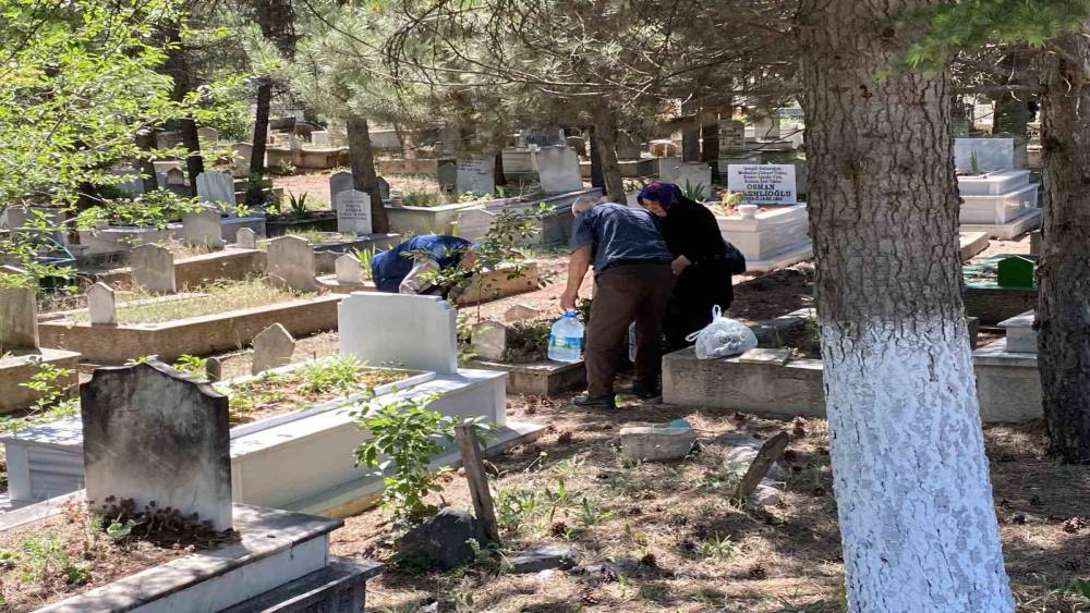 Eskişehir’de bazı vatandaşlar Kurban Bayramı arefesinde, vefat eden yakınlarının kabrini ziyaret etti.