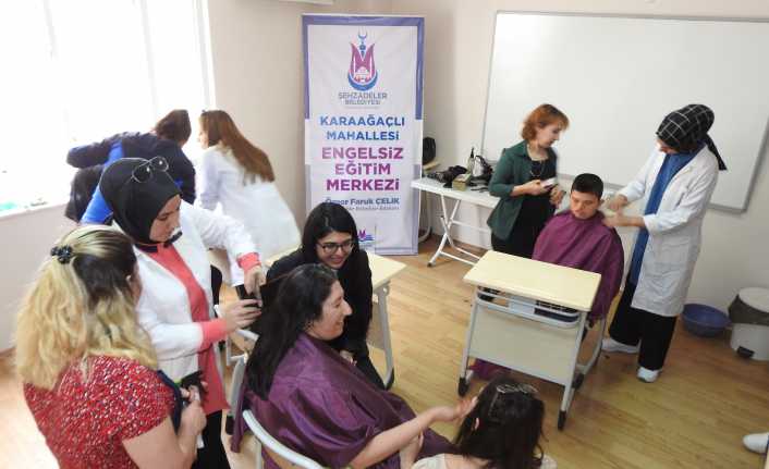 Şehzadeler Belediyesi Karaağaçlı Engelsiz Eğitim Merkezi Koordinatörü Zana Çiçek, “Burada 21 öğrenci, 12 öğretmenle birlikte çeşitli branşlarda spor, el sanatları gibi çeşitli branşlarda eğitimlerimize devam ediyoruz. Bugün de Engelliler Haftası nedeniyle Şehzadeler Halk Eğitim Merkezindeki görevli arkadaşlarımız buradaki öğrencilerimizin saçlarına bakım yapmak için geldiler. Halk Eğitim merkezine çok teşekkür ediyoruz” dedi.