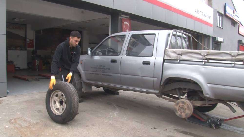 1 Aralık’tan itibaren araçlara takılması zorunlu olacak kış lastikleri için Kütahya’daki tamirciler, vatandaşların isteklerini karşılamak için büyük çaba sarf ediyor. Lastik ustası Melih Yiğit, işlerin son günlerde yoğun olduğunu söyledi.