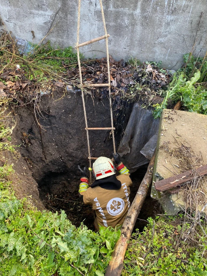 İTFAİYE ERİ MERDİVENLE KUYUYA İNDİ