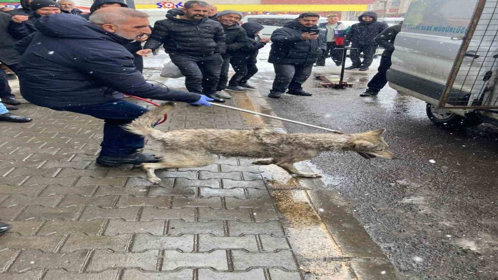 Bingöl’de bir lastikçiye giren ve kısa süreli paniğe neden olan kurt, belediye ekiplerince yakalandı.