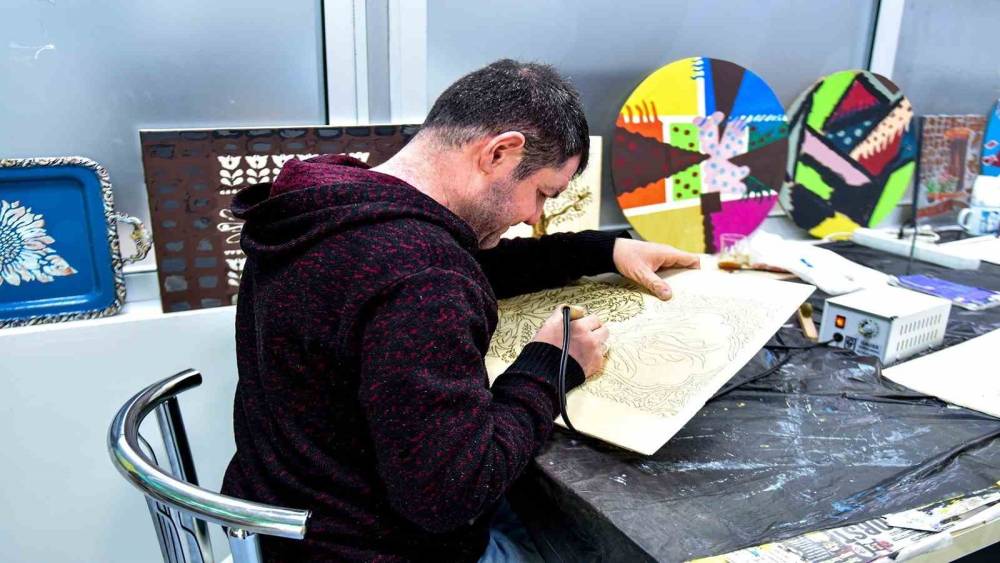 Merkezde ilgi gören kurslardan biri olan resim kursunda, katılımcılar ahşap yakma, boyama ve karakalem gibi farklı teknikleri öğrenme fırsatı yakalıyor.