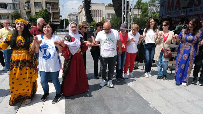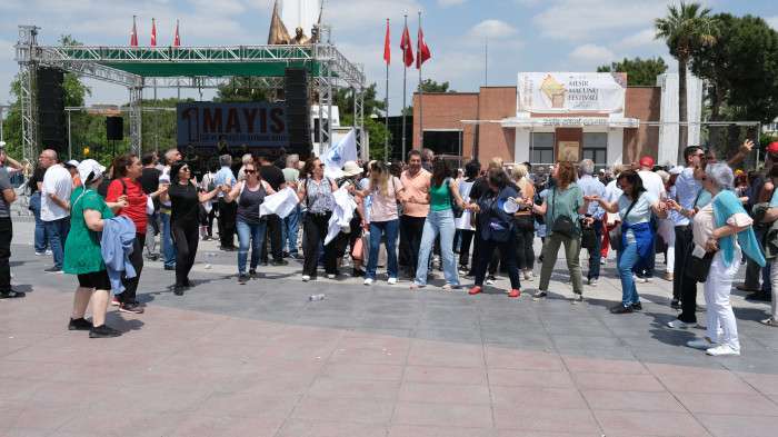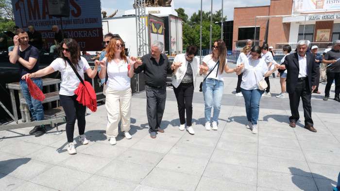 Yürüyüşe katılanlar sloganlar eşliğinde Cumhuriyet Meydanına kadar yürürken, İşçi Demokrasisi Partisi üyeleri Filistin’e destek vermek için Filistin bayraklarıyla yürüdü. Cumhuriyet Meydanı’nda emniyet tarafından yoğun güvenlik önlemleri altında alana giren katılımcılar hayatın kaybeden işçilerin anısına bir dakikalık saygı duruşunda bulundu. Platform üyeleri tarafından 1 Mayıs’ın önemiyle ilgili yapılan konuşmaların ardından katılımcılar çalınan müzikler eşliğinde halaylar çekerek eğlendi.