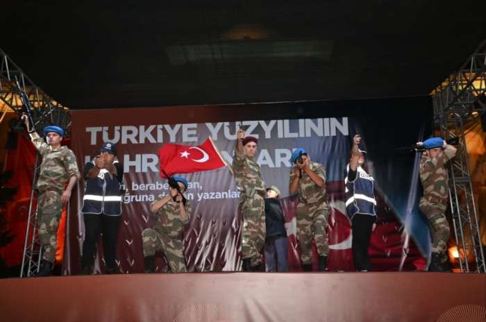Ardından Cumhurbaşkanı Recep Tayyip Erdoğan’ın 15 Temmuz anma programında yaptığı konuşma yayınlandı. Gecede Manisa Büyükşehir Belediyesi Şehir Tiyatrosu da sahne aldı. Şehir Tiyatrosu’nun hazırladığı ’ 15 Temmuz’ adlı oyun sahnelendi. Programda son olarak ilahi dinletisi ile sema gösterileri sahnelendi. 15 Temmuz Demokrasi ve Milli Birlik Günü anma programı saat 00:13’te sala okunması ile sona erdi. Haber Merkezi
