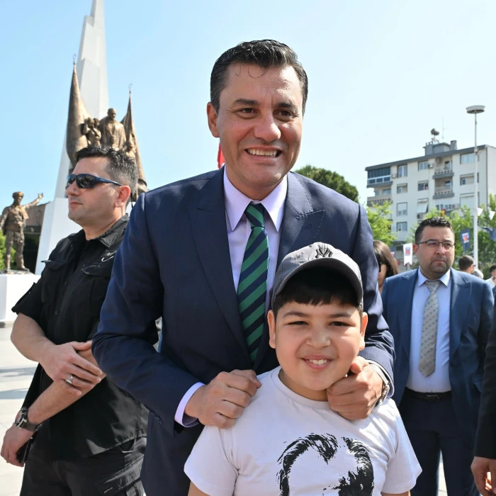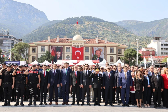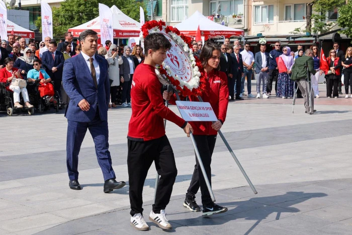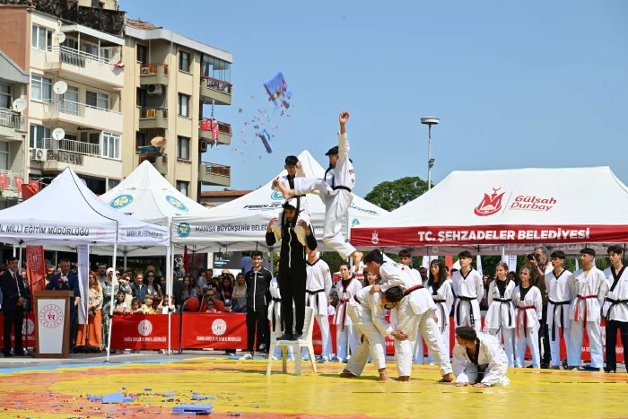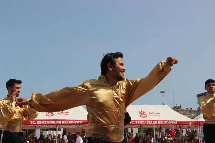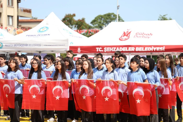 Manisa’nın Şehzadeler ilçesindeki Cumhuriyet Meydanında bulunan Atatürk ve Milli Egemenlik Anıtına çelenk sunulmasıyla başlayan kutlama programı Cumhuriyet Meydanında büyük bir coşkuyla kutlandı.