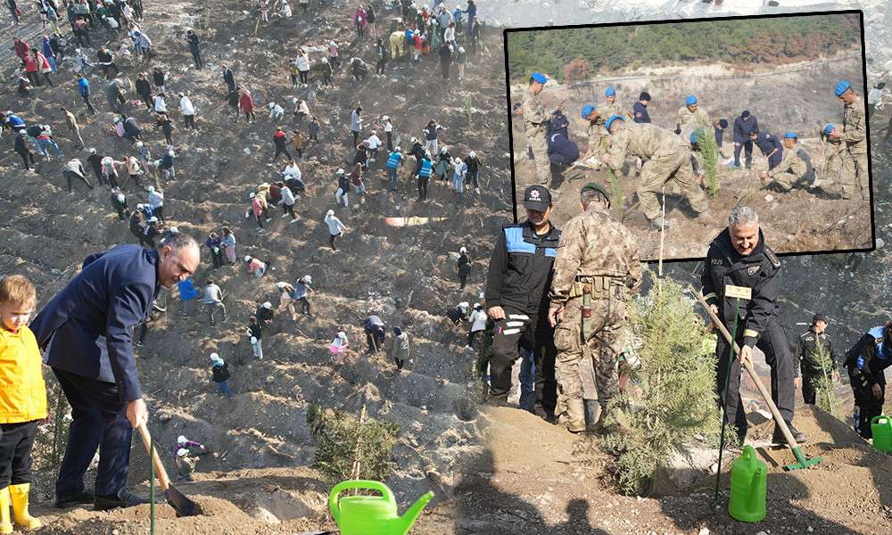 Manisa'da Milli Ağaçlandırma Seferberliği kapsamında geçtiğimiz yaz ayında yanan alanlarda fidanlar toprakla buluşturuldu. Manisa Valiliği öncülüğünde düzenlenen programda 3 bin fidan dikildi. Etkinlikte konuşan Manisa Valisi Vahdettin Özkan, "Okullarımızın, gençlerimizin aile büyüklerimizin bu konuda teyakkuzda olması ve yönlendirme yapması gerekmektedir." dedi.