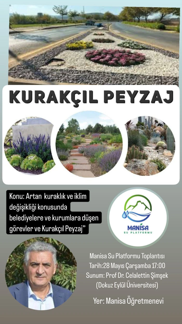 Toplantıya ilişkin açıklamalarda bulunan Manisa Su Platformu Sözcüsü Dr. Muzaffer Yurttaş, özellikle kuraklık riski yüksek bölgelerde suyun verimli kullanımının hayati önemde olduğunu belirterek şu ifadeleri kullandı: “Türkiye’de ve özellikle Manisa gibi kuraklık riski yüksek bölgelerde, suyun verimli kullanılması büyük önem taşıyor. Başta belediyeler, OSB’ler, üniversiteler, okul bahçeleri ve kamu kurumları gibi geniş alanlar için kurakçıl peyzaj dikkate alınmalı ve öncelikli sıraya koyulmalıdır. Yerli (endemic) ve bölgeye uyum sağlamış, düşük su ihtiyacı olan türler tercih edilmelidir. Çim alanlardan mümkün olduğunca kaçınılmalı; çim yerine yer örtücü kurakçıl bitkiler kullanılmalıdır. Damla sulama veya sızdırma hortumu gibi verimli sulama yöntemleri tercih edilmelidir. Sulama işlemleri sabah erken saatlerde veya akşam serinliğinde yapılmalıdır. Gri su kullanımı (örneğin bina çıkışlı arıtılmış su) desteklenmelidir. Yağmur suyu hasadı ve yer altı su biriktirme sistemleri kurulmalıdır. Tüm bu konuları enine boyuna tartışacağımız toplantıya tüm duyarlı halkımızı davet ediyoruz.” (Haber Merkezi)