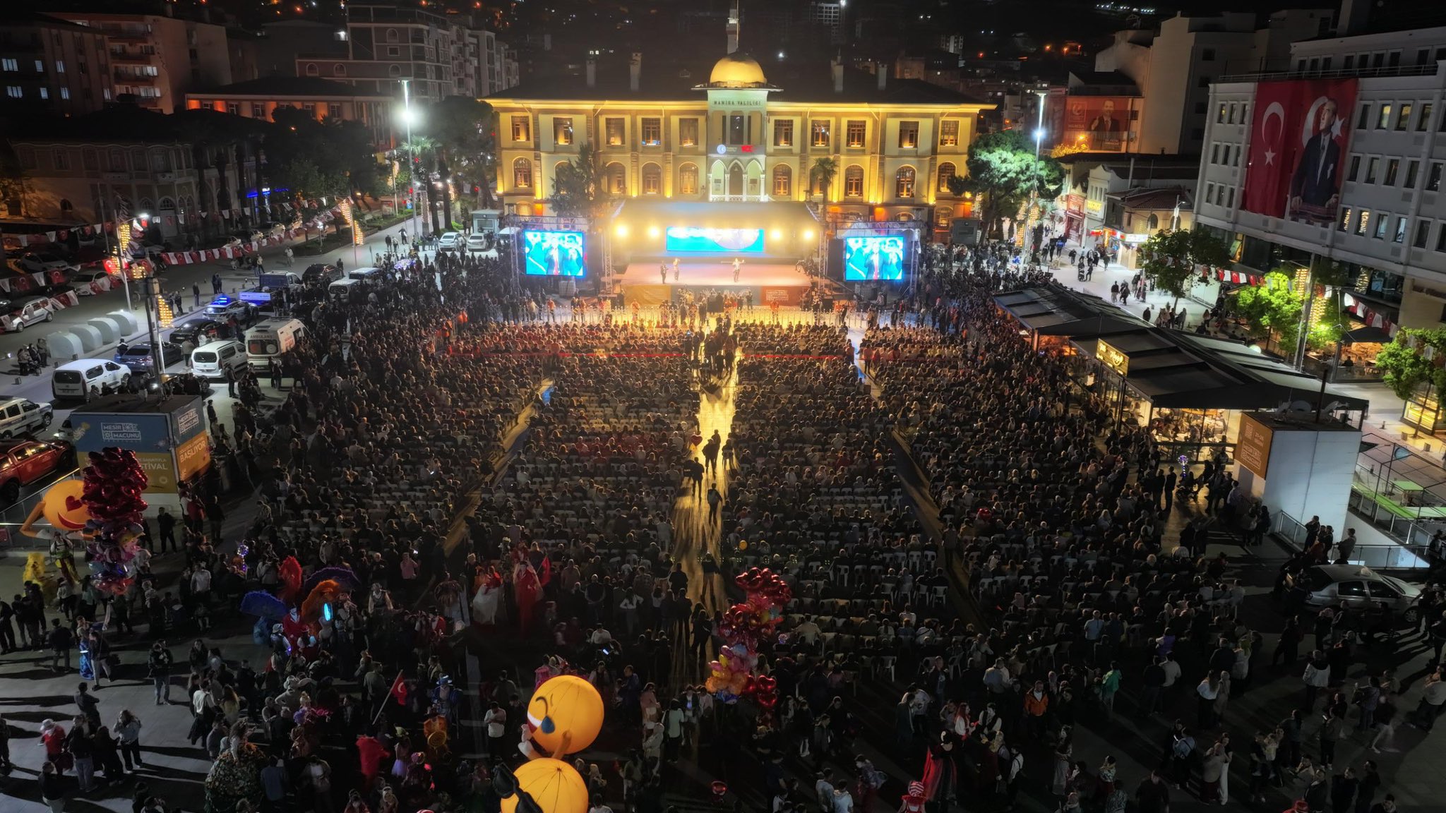 Program, sahne alan yerli ve yabancı halk dansları ekiplerinin gösterileriyle devam etti. İlk olarak Ege yöresine ait oyunlar sahnelenirken, ardından Litvanya, Kazakistan ve Kuzey Makedonya’dan gelen ekipler ülkelerine özgü danslarını sergileyerek izleyenlere görsel şölen sundu. Yoğun katılımın olduğu etkinlik, vatandaşların alkışları eşliğinde sona ererken, festival coşkusu Manisa’nın dört bir yanına yayılmaya devam ediyor.
