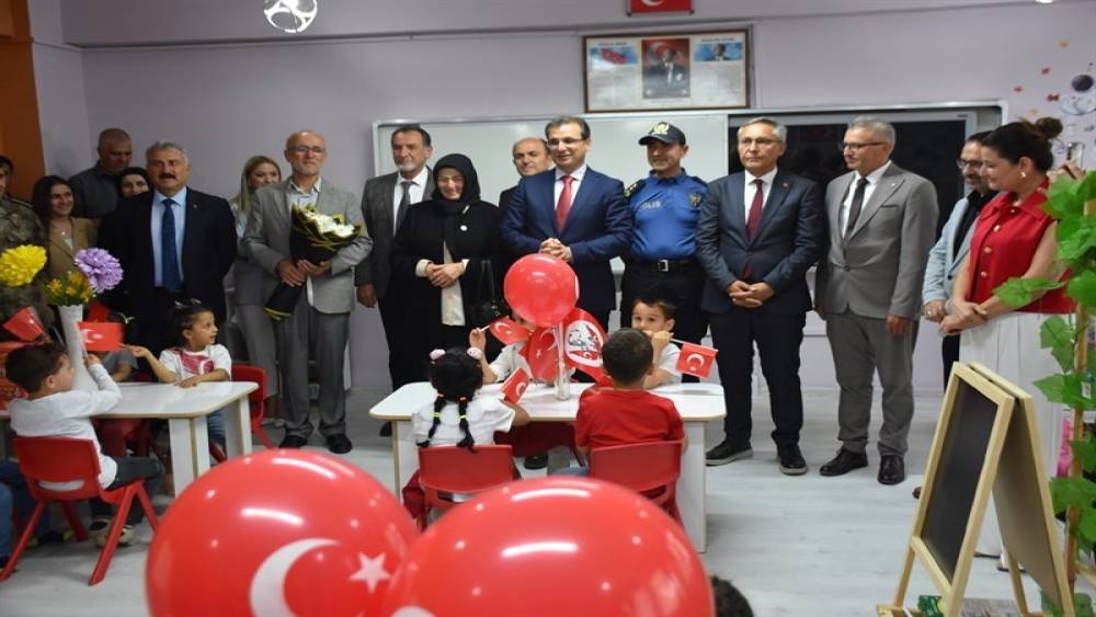Programda konuşan Kaymakam Güldoğan, "Fedakarlıkların en büyüğünü yaparak vatan müdafaasında canlarını feda eden Şehitlerimizi bir kez daha rahmet ve şükranla anıyorum. Yenilenmek suretiyle çocuklarımızın hizmetine sunulan kütüphane ve anasınıfının hayırlı olmasını diliyorum" dedi.