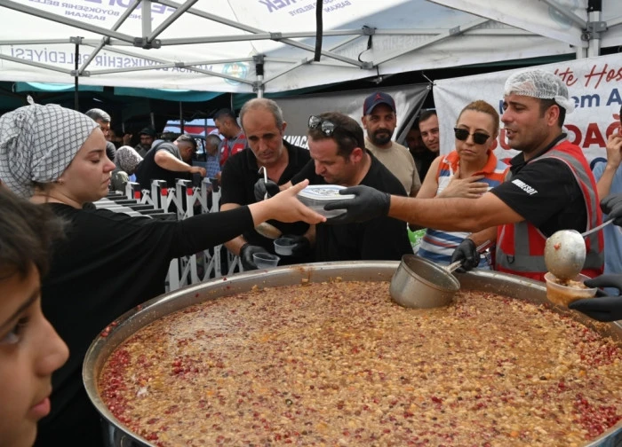 Manisalılar, aşure yiyip bu anlamlı geleneği bir arada yaşamanın mutluluğunu paylaştı. Paylaşma kültürünü yaşatan aşure hayırları, 24 Temmuz Perşembe günü saat 13.30’da Perşembe Pazarı’nda devam edecek. (Adnan Poyraz)