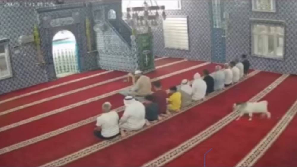 Mardin’in Kızıltepe ilçesinde cemaat namaz kılarken camiye giren oğlak güvenlik kamerasına yansıdı.