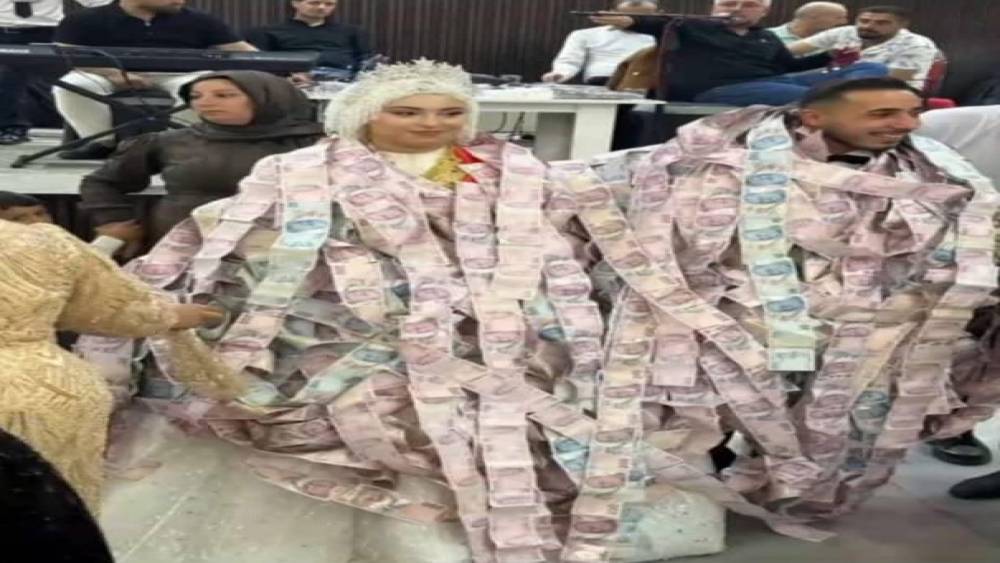 Mardin’in Kızıltepe ilçesinde Ömer ve Gülsüm Akgül çiftinin düğününde damada, valizle getirilen 200 liralık banknotlardan oluşan yelek giydirildi, geline ise 2 kilo 100 gram altın takıldı.