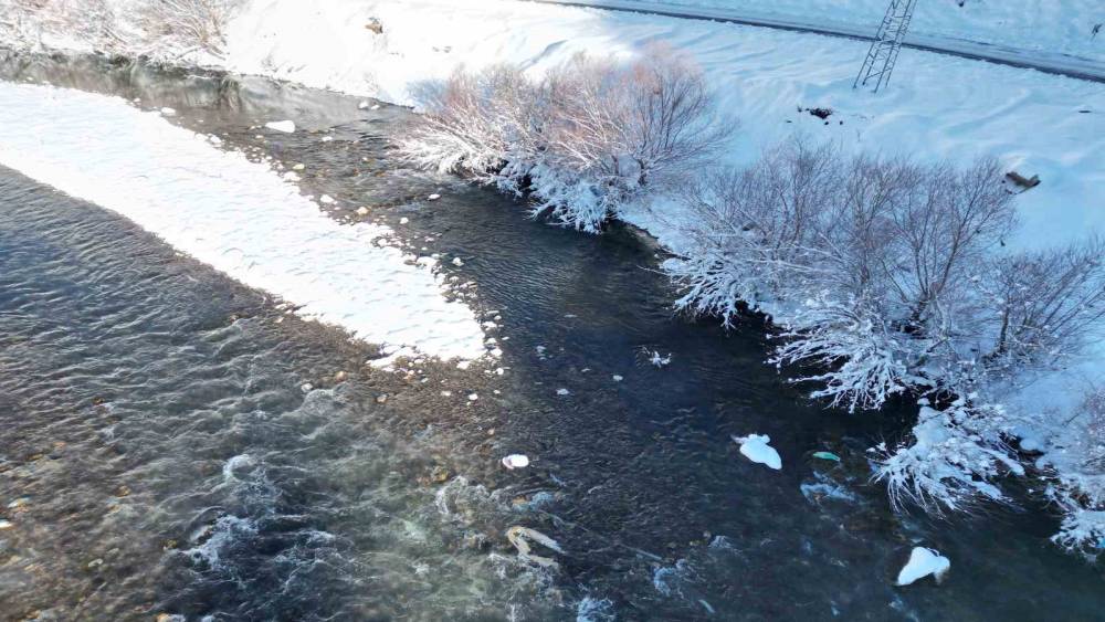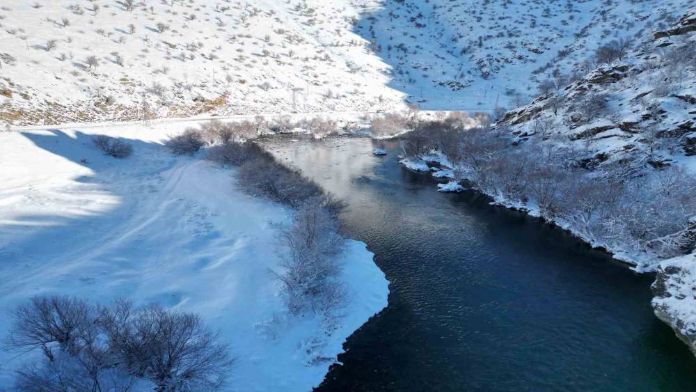 Şırnak’ta kar yağışıyla beraber oluşan masalsı görüntüler görenleri hayran bıraktı. Kar ve su bir anda havadan görüntülendi.