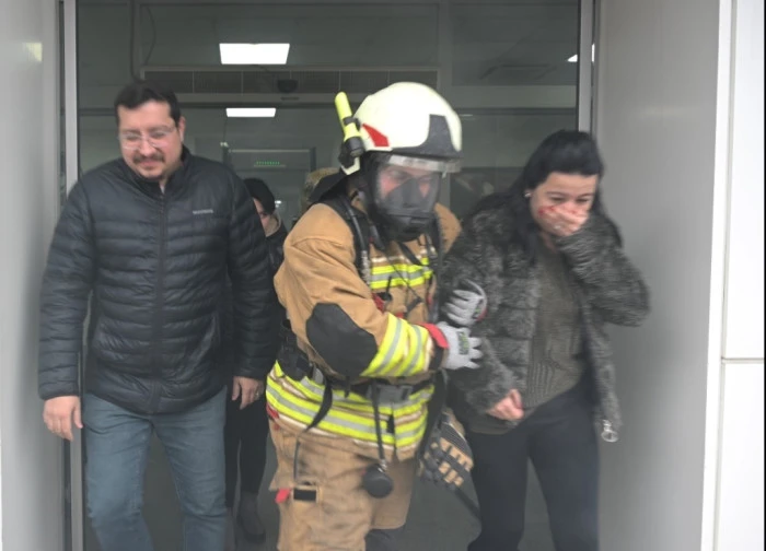 Manisa Su ve Kanalizasyon Dairesi (MASKİ) Genel Müdürlüğü, kurum içi iş sağlığı ve güvenliğini sağlamak, acil durum anında hizmet binasının hızlıca tahliyesini sağlamak ve müdahale hızını artırmak amacıyla ‘6331 sayılı İş Sağlığı ve Güvenliği Kanunu’ kapsamında ‘Binaların Yangından Korunması Hakkındaki Yönetmeliği’ gereğince gerçeği aratmayan yangın tatbikatı düzenledi.  TATBİKATA GÜRHAN İNAL DA KATILDI  Manisa Büyükşehir Belediyesi İtfaiye Dairesi Başkanlığı ve MASKİ Genel Müdürlüğü Sivil Savunma Uzmanlığı Birimi iş birliğiyle organize edilen tatbikata Büyükşehir Belediyesi İtfaiye Daire Başkanı Gürhan İnal, MASKİ daire başkanları, İş Yeri Sağlık ve Güvenlik Biriminden iş güvenliği uzmanları ve personeller katıldı. SENARYO GEREĞİ ÇIKAN YANGINA MÜDAHALE EDİLDİ MASKİ idari hizmet binasında mesai saatleri içerisinde gerçekleştirilen tatbikatta, yangın alarmının çalmasının ardından personeller binadan hızlıca ayrıldı. Senaryo gereği yangının çıktığı kata kısa sürede ulaşan itfaiye ekipleri yangını kontrol altına aldı. Yangın esnasında yaralanan personele ise iş yeri hekimi tarafından müdahale edilerek sağlık ekiplerine teslim edildi. Öte yandan uygulama için hizmet binası önünde belirlenen alanda personele yangın söndürme tüpü ile uygulamalı olarak yangına müdahale konusunda bilgilendirme yapıldı.  Editör: PINAR ÖZEL