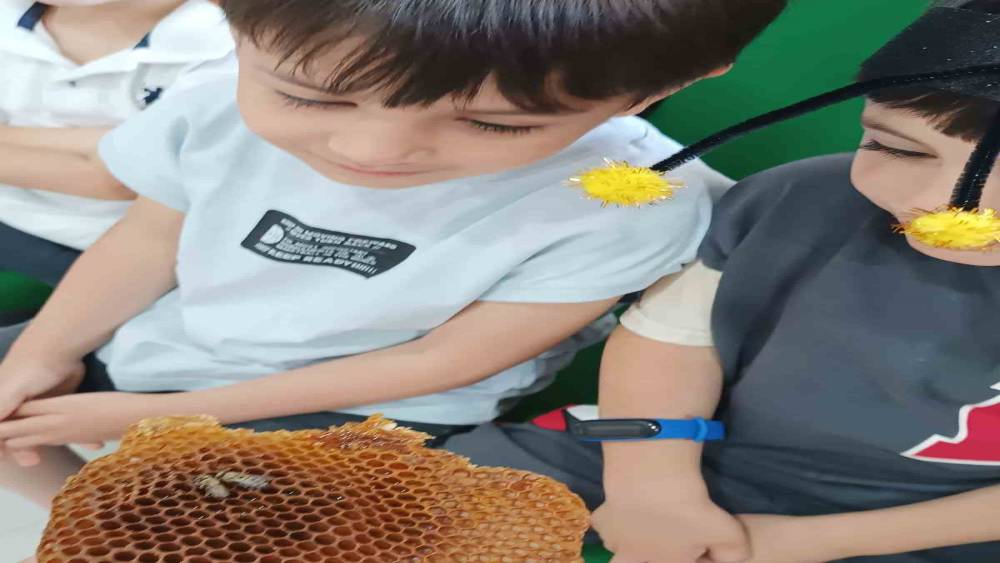 Arıcılık eğitimi almış öğretmen Ali Güçlü’nün öncülüğünde gerçekleştirilen programda, öğrenciler arı kovanları ve bal peteklerine dokunarak arıcılıkla ilgili bilgi aldı. Arıların doğadaki önemi, polinasyon süreci, kovanlarda bal üretimi ve balın faydaları gibi konularda öğrencilere ve velilere bilgilendirme yapıldı.