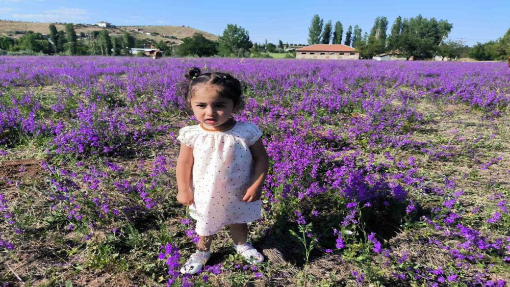 Malatya’nın Doğanşehir ilçesinde yol kenarında açan mor renkli yabani otlar, görenleri mest etti.