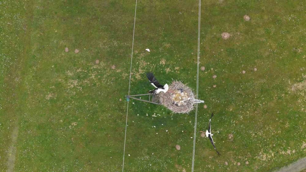 Muş Ovası’na bahar mevsimiyle dönen leylekler yumurtlamaya başlayarak, yaklaşık 35 gün sürecek kuluçka dönemine hazırlanıyor.