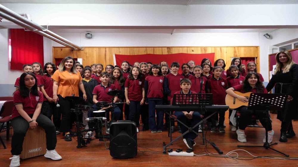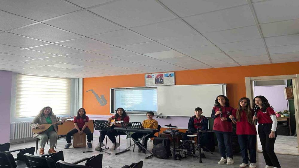 Müşir Zeki Paşa Ortaokulu’nda açılan müzik sınıfında öğrenciler Müzik Öğretmenleri Çimen Kaya Topgül ve Sevilay Erkan nezaretinde çalışmalarını devam ettiriyorlar.