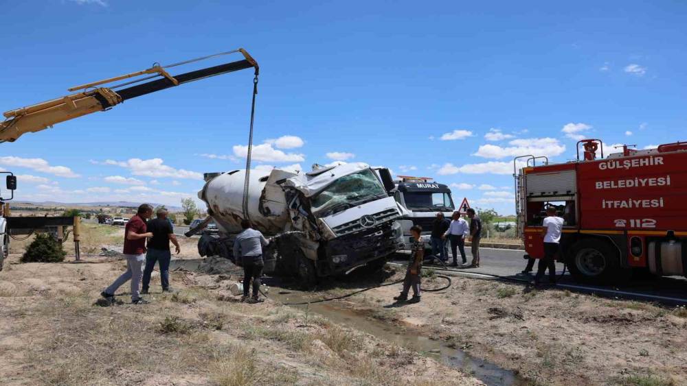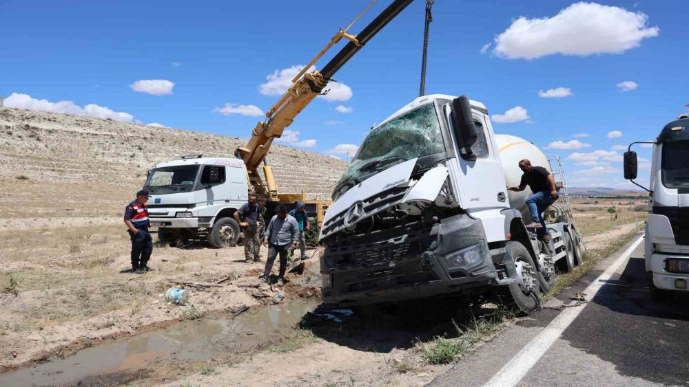 Nevşehir’de kontrolden çıkan beton mikserinin şarampole devrilmesi sonucu meydana gelen kazada sürücü yaralandı.