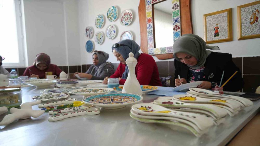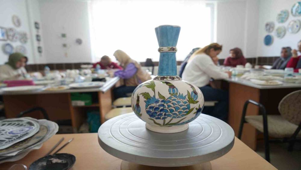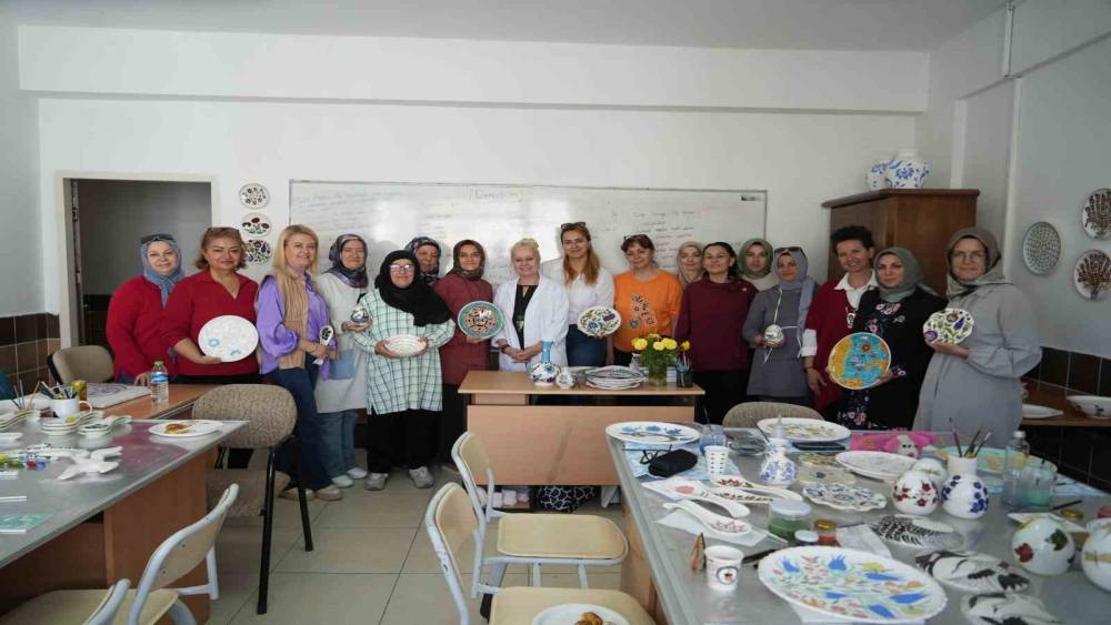 Seramik üzerine işlenen Osmanlı motifleriyle birbirinden güzel eserler ortaya çıkaran kadınlar, hem unutulmaya yüz tutmuş bir kültürel mirası yaşatıyor hem de ürettikleri ürünlerle ekonomik kazanç sağlıyor. Halk Eğitimi Merkezi’nde verilen eğitimlerle çini sanatının tüm inceliklerini öğrenen kadınlar, aldıkları uygulamalı dersler sayesinde tabaktan vazoya, pano süslemesinden çeşitli hediyelik objelere kadar pek çok ürünü başarıyla hazırlıyor. Kurs Eğitmeni Sema Günay, çini yapımının teknik aşamalarını detaylarıyla öğrettiklerini belirterek, kursiyerlerin kısa sürede büyük ilerleme kaydettiğini dile getirdi. Günay, kursun gördüğü ilgiden memnuniyet duyduğunu aktararak şunları söyledi: