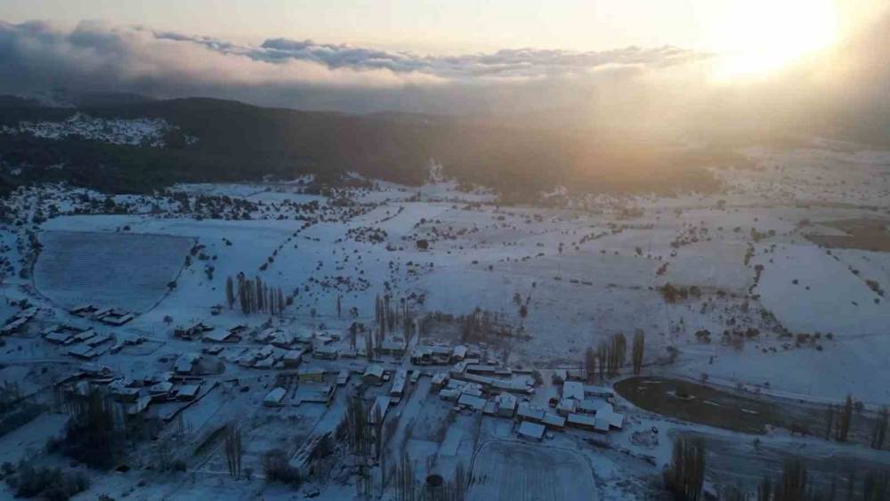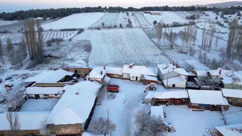Eskişehir’in yüksek rakımlı ilçesi Mihalıççık’ın bazı mahallelerine Nisan ayının ortasında yağan kar şaşırttı.Mihalıççık ilçe merkezine 11 buçuk kilometre uzaklıkta bulunan, Sündiken dağlarının eteğindeki Boşnak nüfusun yoğunlukta olduğu bin 430 rakımlı Lütfiye Mahallesi’nde, Nisan ayının ortasında gece geç saatlerinde kar yağdı. Beyaza bürünen kırsal mahalleliyi mutlu ederken, çiftçiler yeni ektikleri ve filizlenen ürünlerinin soğuk havadan olumsuz etkilenmesinden korktuğu öğrenildi. Mahallenin karla kaplı hali dron ile havadan görüntülendi.
