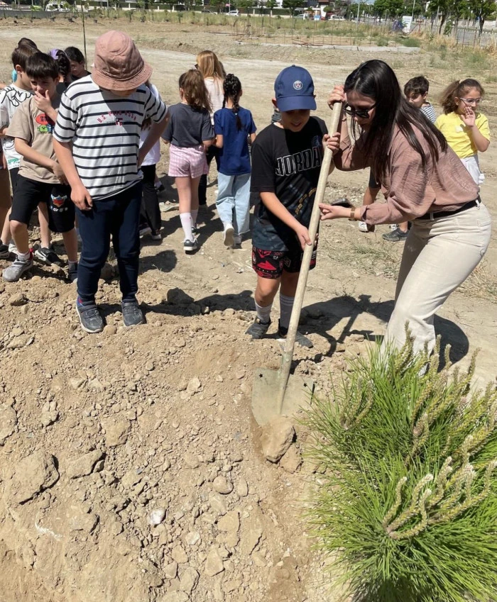 Projenin yerel ayağında ise Manisa Büyükşehir Belediyesi’nin katkılarıyla İbrahim Gül Parkı’na 120 fidan dikildi. Fidan dikimi ile öğrenciler, doğayla birebir temas kurarak çevreye katkıda bulunma sorumluluğunu bizzat deneyimlediler. Bu etkinlik yalnızca bir doğa çalışması değil, aynı zamanda çocuklara kalıcı bir çevre farkındalığı kazandırma açısından da son derece değerliydi.
