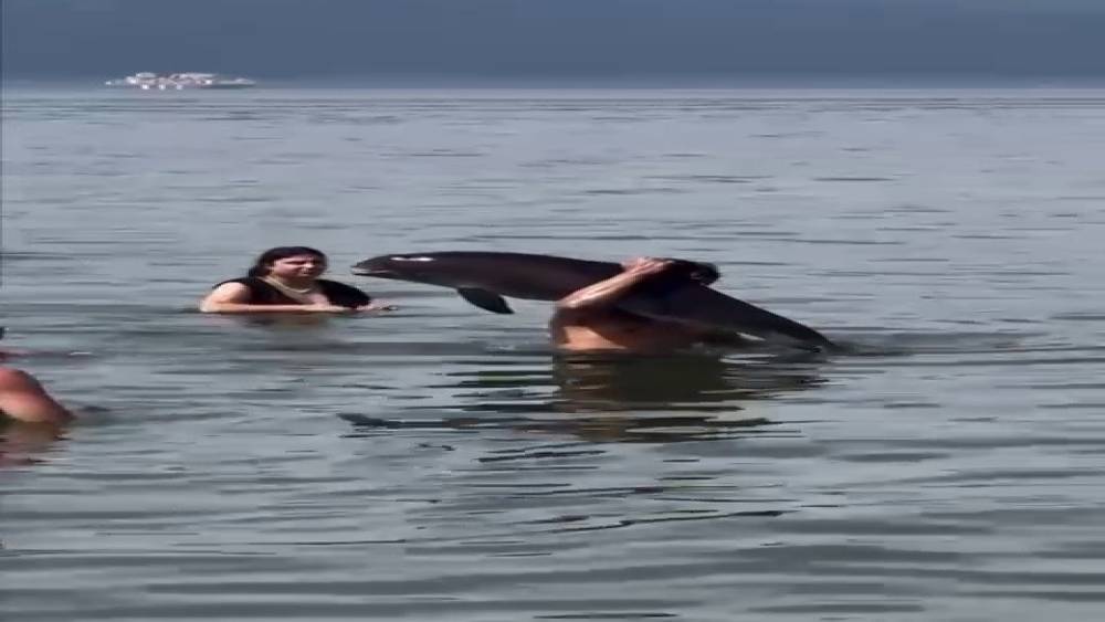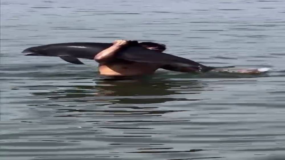 Ölmüş yunus balığını sırtında taşıdı