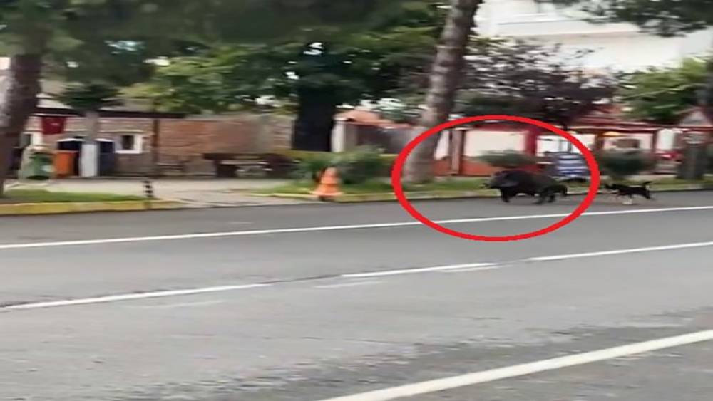 Ordu’nun Fatsa ilçesinde sahil yoluna inen domuz, yolda gezinirken sokak köpekleri tarafından kovalandı. O anlar, vatandaşlar tarafından cep telefonu ile kaydedildi.