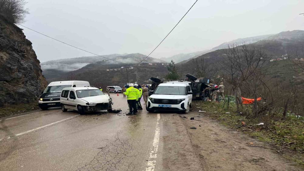 Ordu’da ticari araçla çarpışan askeri araç devrildi