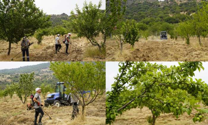 Yunusemre Belediyesi’nin Yuntdağı’nda alternatif ürün çeşitliliğini arttırmak amacıyla Tarımsal Hizmetler Müdürlüğü bünyesinde kurduğu organik meyve bahçesinde temizleme ve budama çalışması yapılıyor.
